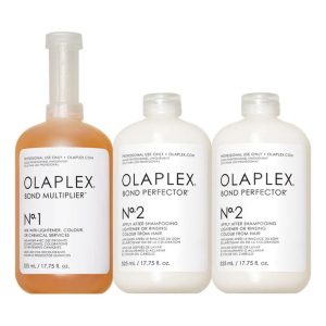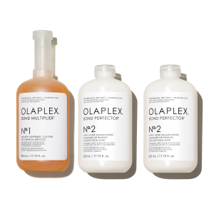 Nº.1 Bond Multiplier™ and Nº.2 Bond Perfector®–the first-of-its-kind, 2-step, professional-only bond-building treatment that made damage repair and prevention possible in any salon service. The highest concentration of patented OLAPLEX Bond Technology™ works on a molecular level to mitigate hair damage by repairing all 3 hair bonds– including disulfide bonds–caused by chemical, thermal, and mechanical damage. Add to any chemical service or use on its own.
