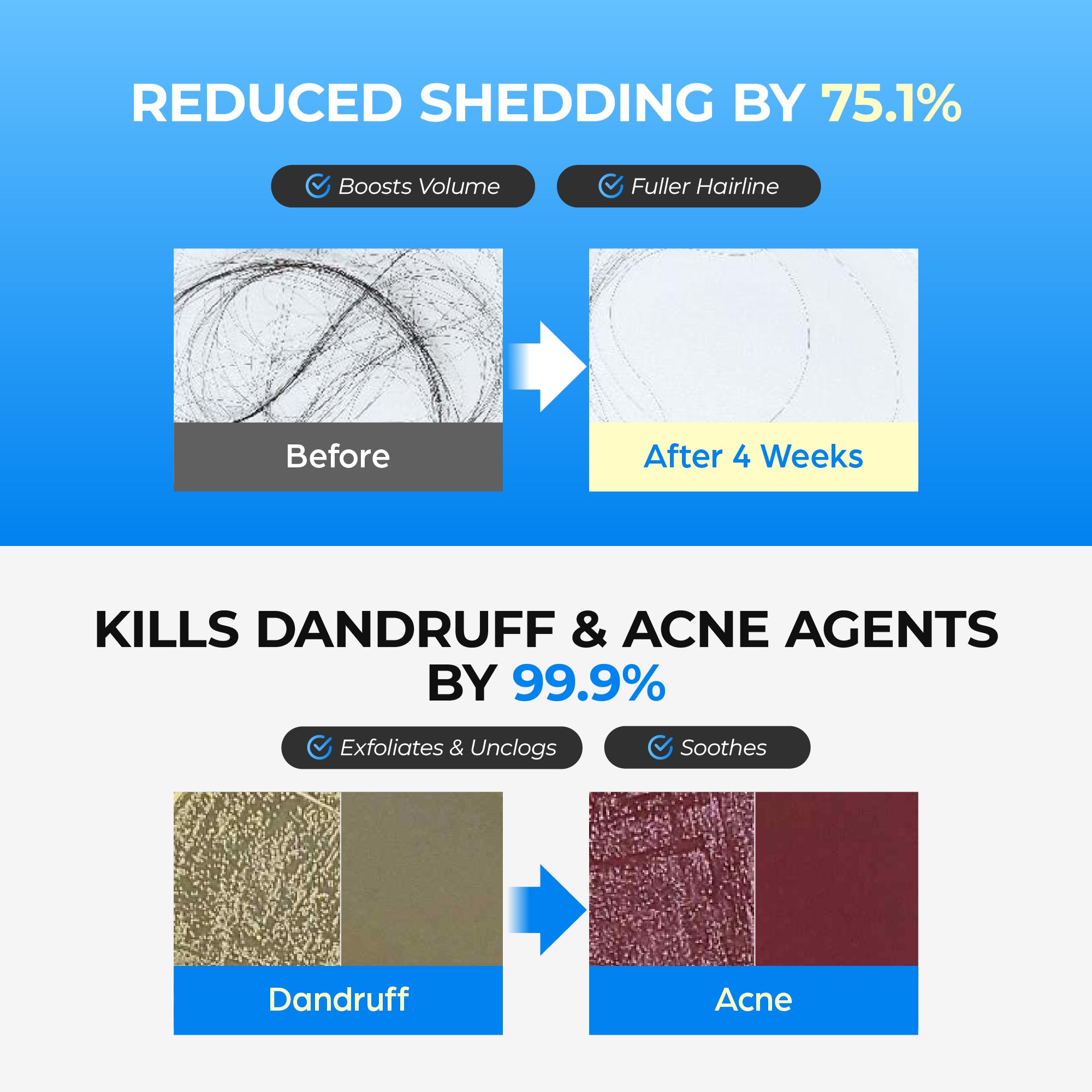 Scalpy Bubble Tonic is a 2-in-1 product that innovatively treats hair loss concerns by being a massager and a topical product at the same time. As can be found in the articles above, the 5 key ingredients in our product are backed up by science to treat hair loss, while the applicator also boosts the effect.