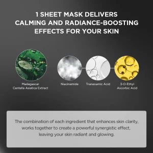 A sheet mask with a rich essence of Madagascan Centella & Niacinamide makes your skin radiant and glowing.