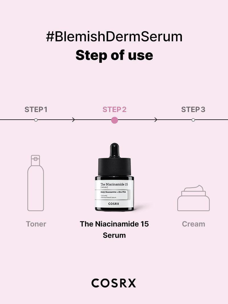 COSRX The Niacinamide 15 serum is for those with oily, combination, or acne-prone skin. It is particularly useful for individuals dealing with excess sebum production, enlarged pores, rough skin texture. It optimally combines 15% niacinamide with other ingredients and addresses all stages of acne, from the initial to the final stage, providing a comprehensive care solution.