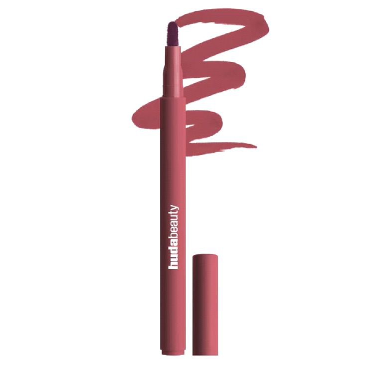 Available in 8 lip stain colors, pair with one of our Faux Filler Jelly Lip Oils to recreate Huda’s jelly-stained lip makeup look.